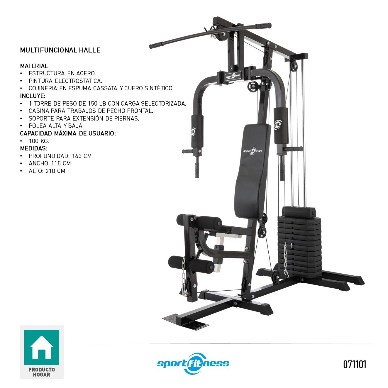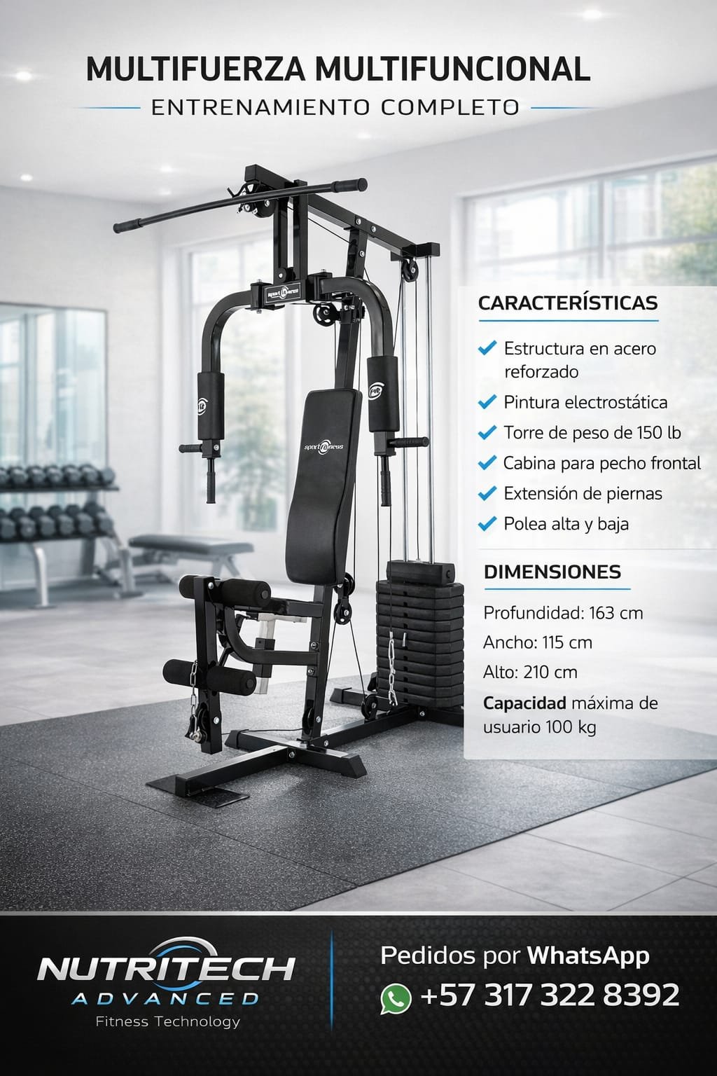 Entrena todo tu cuerpo con una sola máquina. La Multifuerza 150 lb Sportfitness está diseñada para ofrecer un entrenamiento completo de fuerza desde casa, combinando resistencia, comodidad y seguridad en un equipo compacto y funcional.