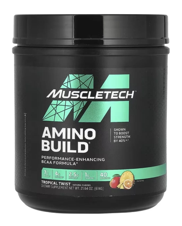 Maximiza tu recuperación y rendimiento con MuscleTech Amino Build, una fórmula avanzada de aminoácidos BCAA diseñada para ayudar a construir fuerza, acelerar la recuperación y mejorar el rendimiento durante entrenamientos intensos. Con respaldo científico y un delicioso sabor Tropical Twist, es el aliado perfecto para deportistas exigentes.