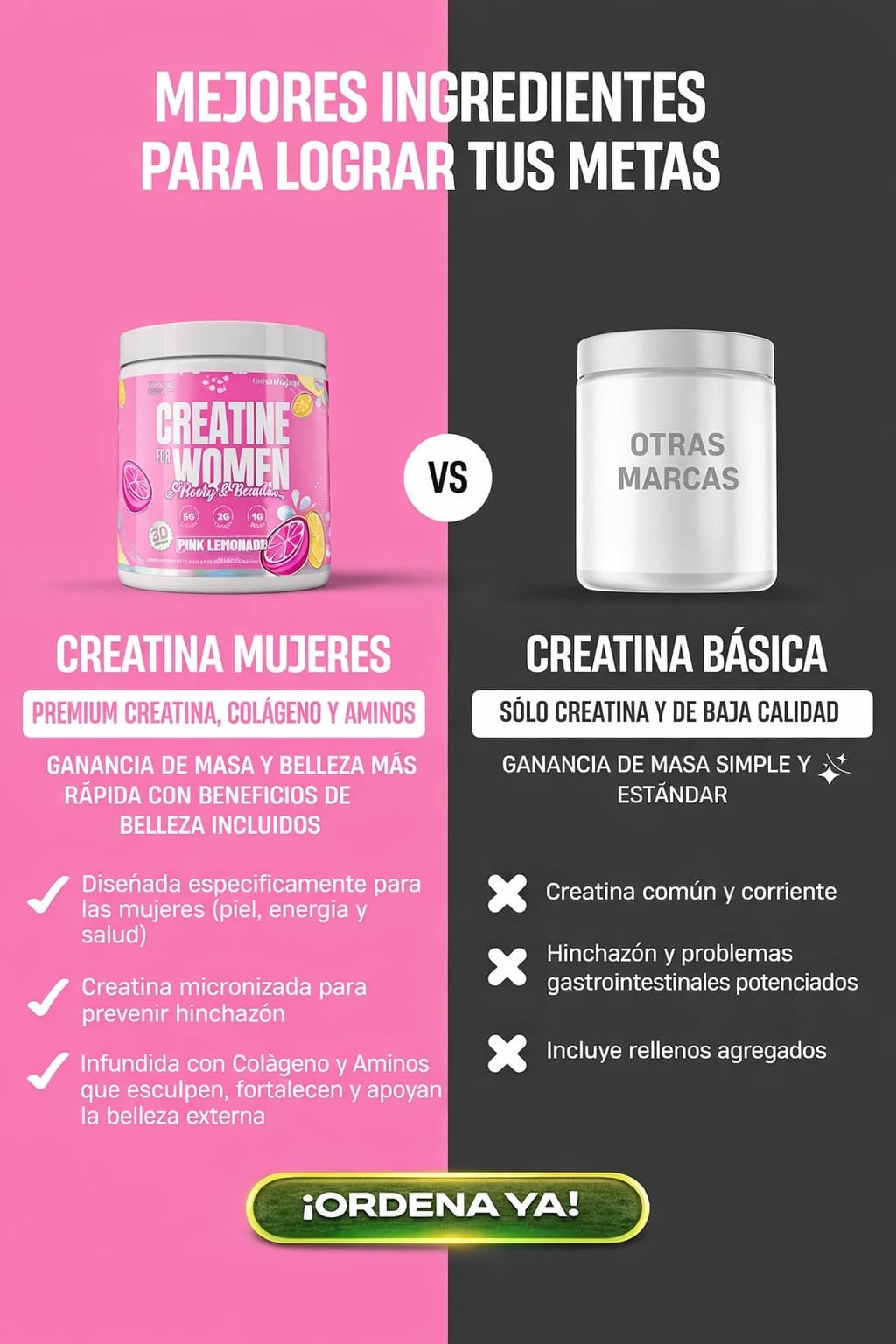 • ✅ Fórmula 3 en 1: creatina, colágeno y aminoácidos en un solo producto.